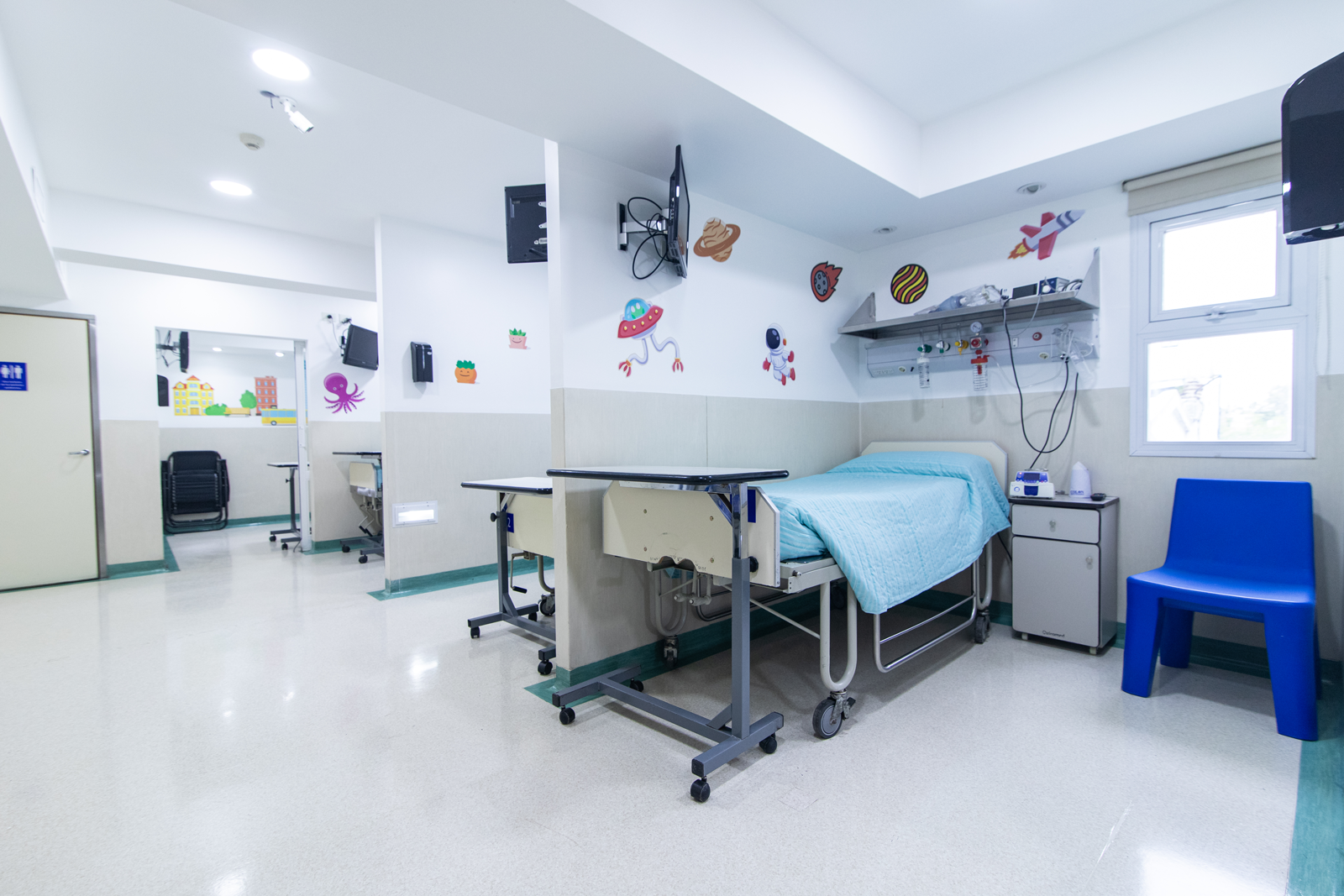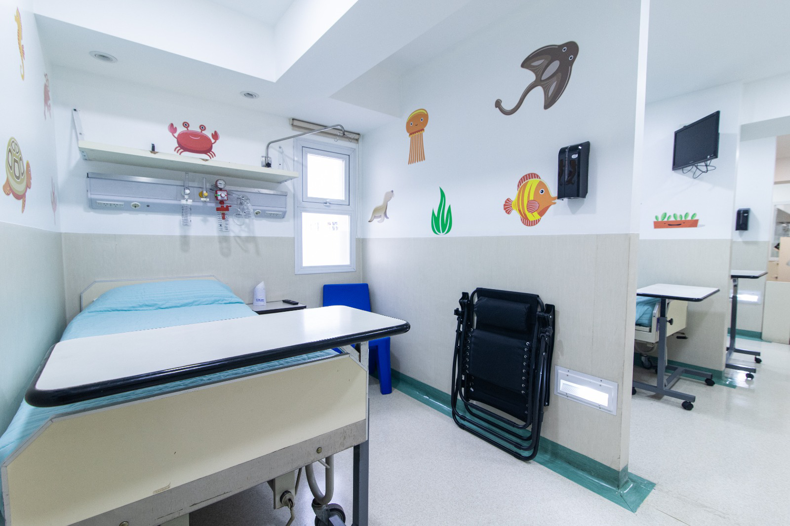 El sector consta de 6 camas (2 pueden ser utilizadas como aislamientos) y cada unidad tiene espacio para un acompañante. Cada paciente pediátrico puede permanecer acompañado de un adulto durante su internación.